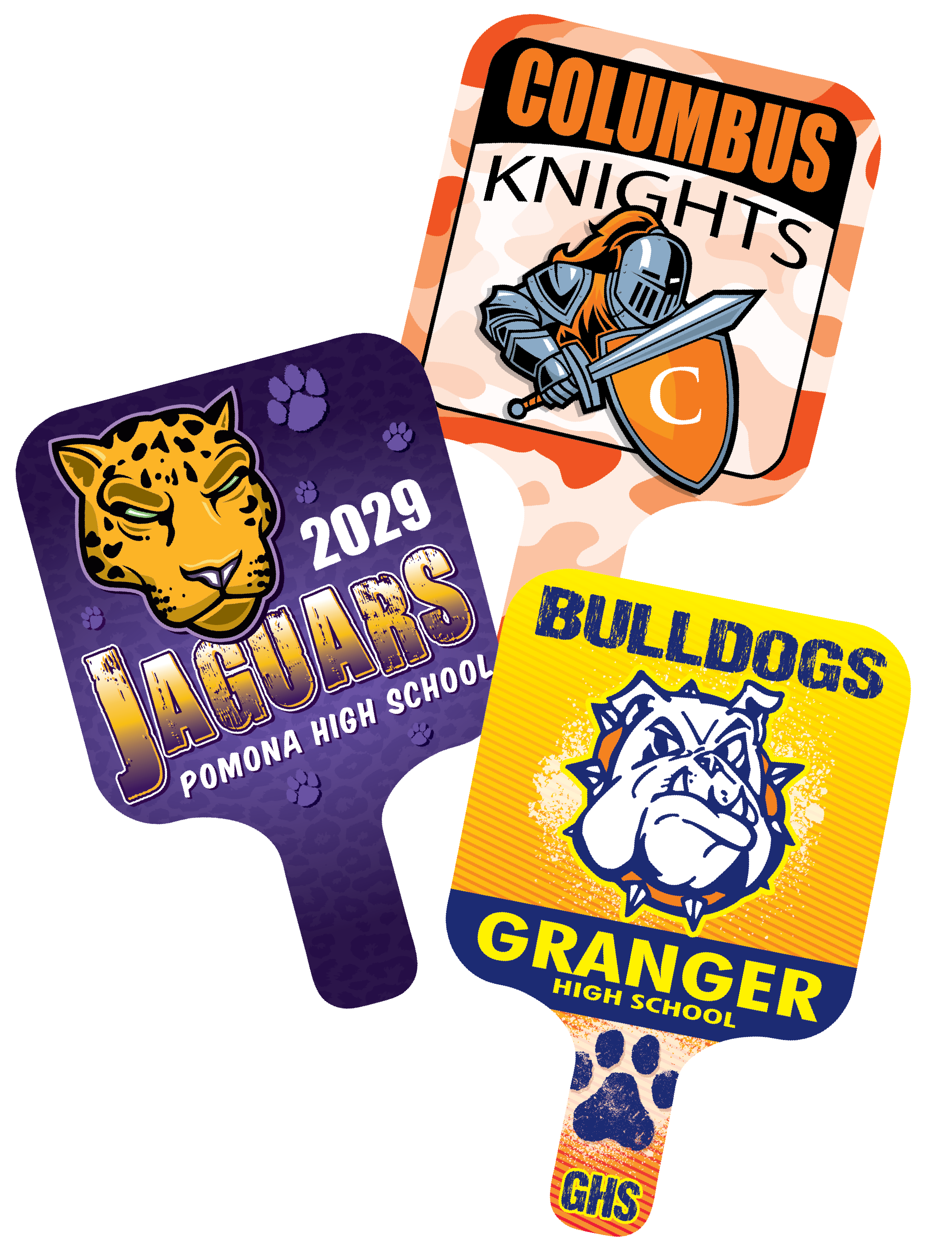 What a great way to support your team with “FAN” Fans. These white, waterproof, corrugated vinyl fans measure 7″ x 11″. You can print on one side in full color.