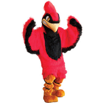 This Cardinal mascot has a zip back with a red and black body. The head of this Cardinal is shaped with a red and black Mohawk and piercing brown eyes. From this Birds-Eye-View NO ONE can HIDE. The Cardinal Costume includes Red wings outlined in black, and tan vinyl-soled bird feet. All Mascot uniforms are made in the USA! Uniforms fit anyone 5’4″ -6’2″. The head includes a screened vision panel, comfort ventilation panels, and a built-in cooling fan.