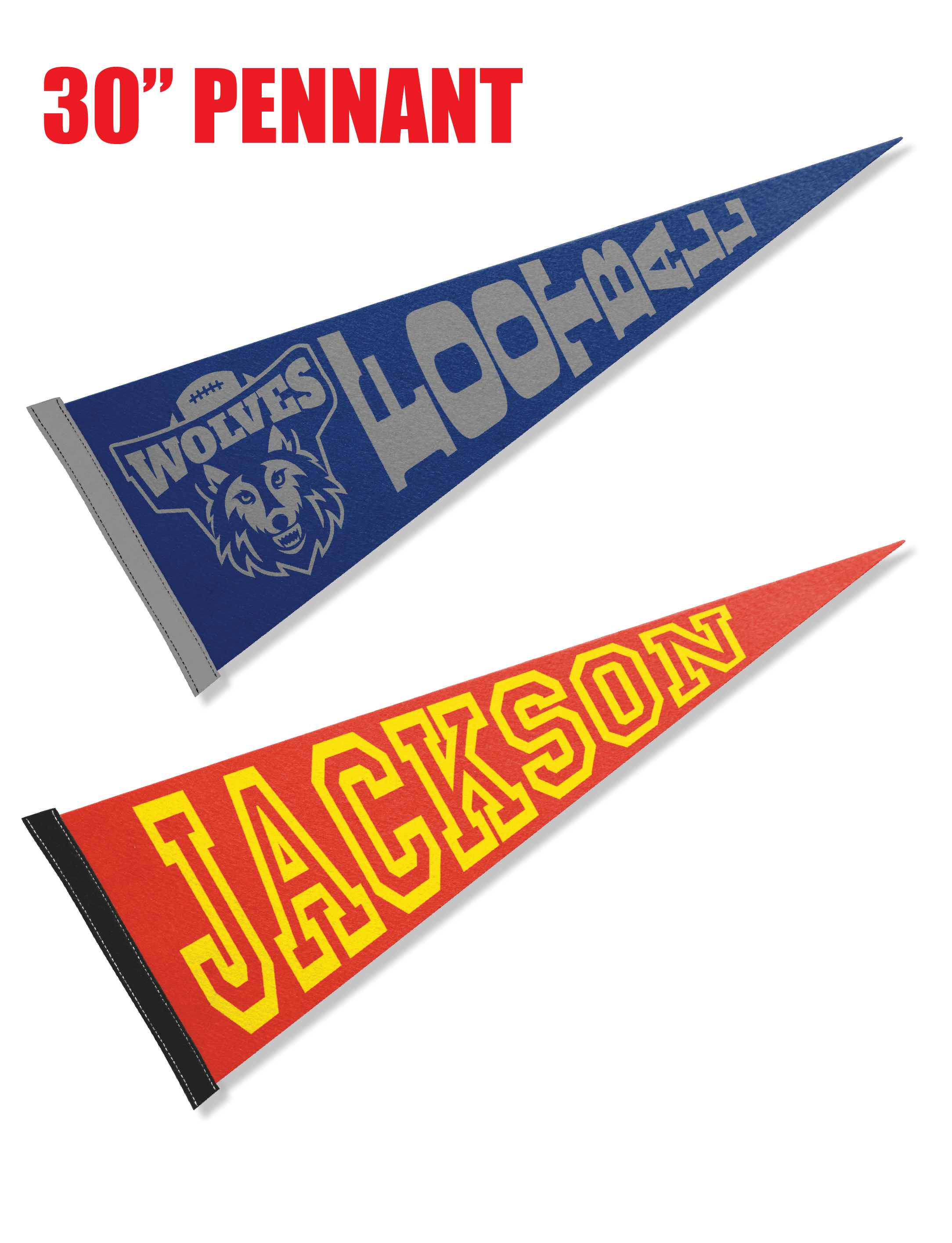 You can custom design these printed 12″ x 30″ sport pennants, therefore you get exactly the look you want! Go way back with us by ordering your custom printed pennants today. Create it, Design it, Wave them in the air like you just don’t care!! These classics are fabulous for fundraising and are so much fun! Made from top quality synthetic felt. Available in 13 popular colors! They have a sewn on felt stripe. Felt end stripe will be in the same color as ink selection. You can request another color. Some ink colors are not available in felt. These custom printed pennants are great to wave at the game or to hang on your bedroom wall or in classrooms! They make great keepsakes which means they make great fundraiser items. These old school pennants are now the hip thing to have and save for school memories!
