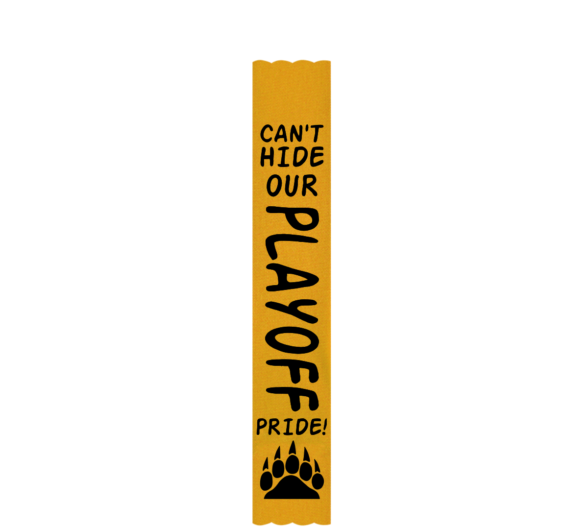 With these ribbons, if you need sticky tops, we have multiple options available in gold or silver tops! All of our options are available at a very reasonable price. We also have the super badge available at a great price! It’s simple when it comes to ordering these ribbons. Simply choose your ribbon color, your imprint color, your team nickname, a mascot, and then one of our yell designs. The stock fight yells cannot be altered. For custom ribbons and pricing, please fax or phone in your order.